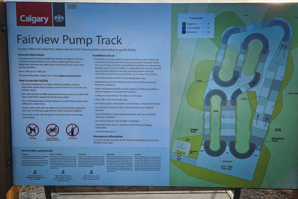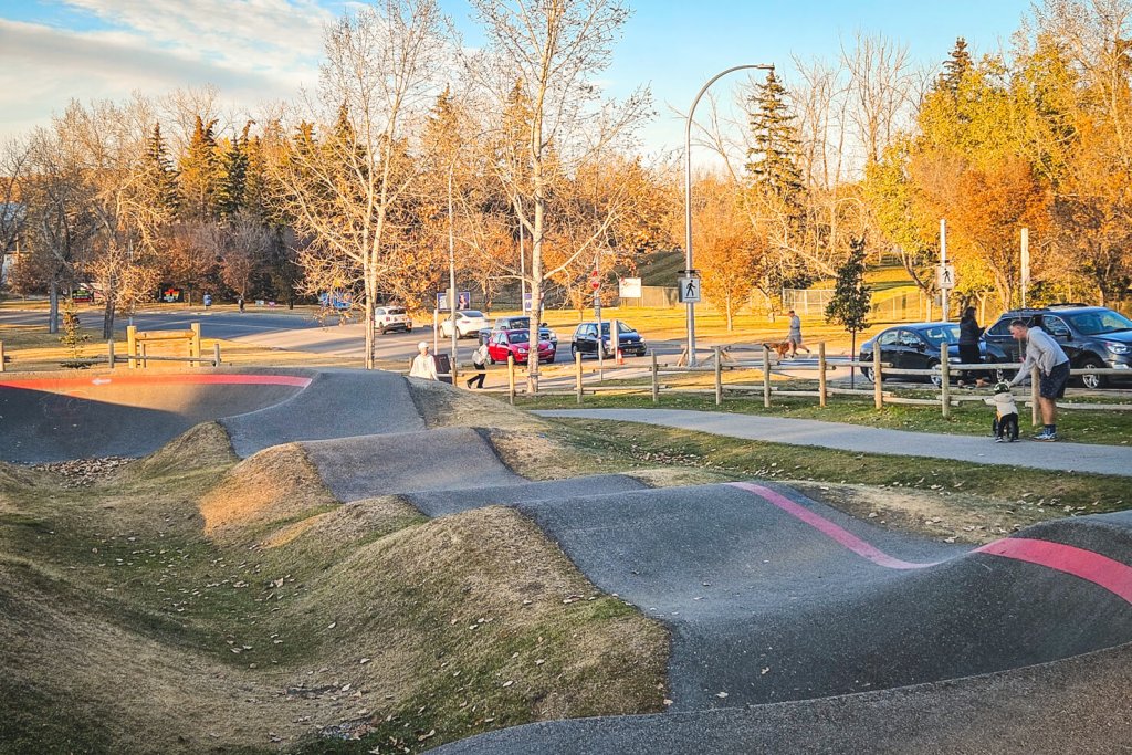 Why go: Fairview’s pump track was Calgary’s first asphalt pump track built in June 2020. It’s well suited for beginner to intermediate.