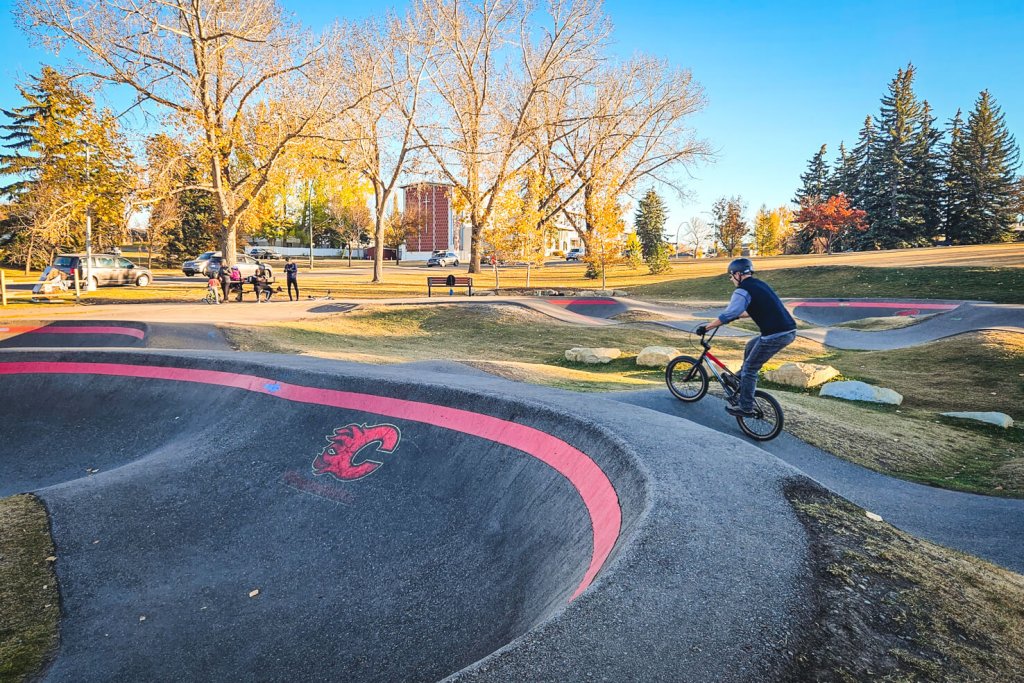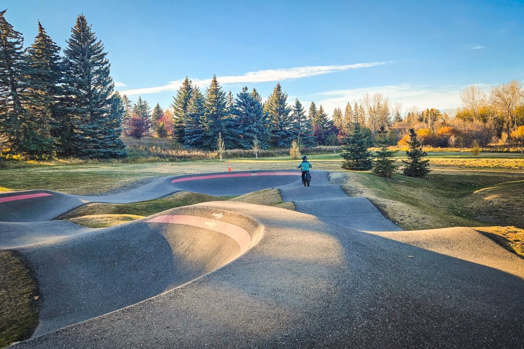 I love that the city and communities built so many amazing pump tracks so our whole family can progress in biking skills. Since it’s one of our top ten things to do with kids in Calgary, we ride from May to November usually.