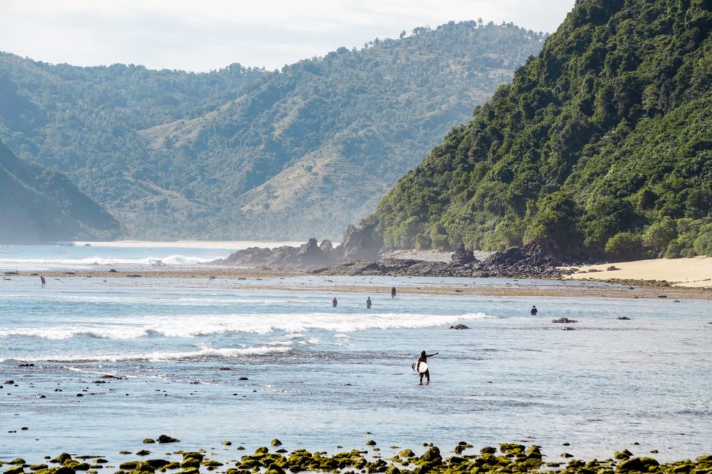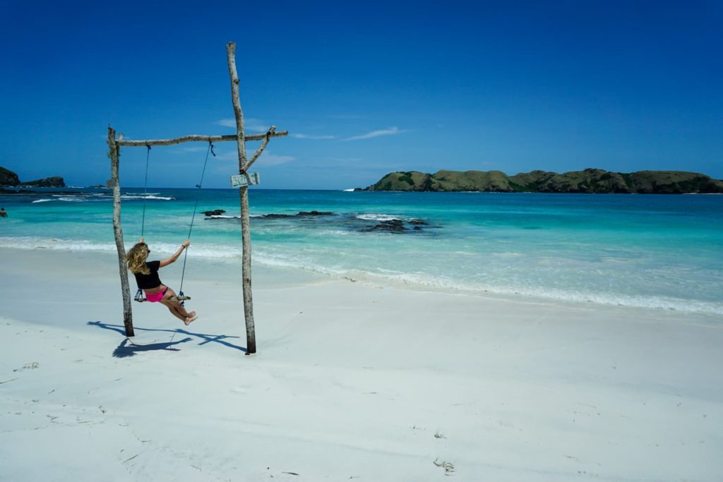 Tanjung Aan Beach is the whitest beach in Lombok. Some surf shops take beginners here to surf but since waves are quite far from the shore and reachable by boat, itβs also a great place for swimming. The beach has several warungs with cooked and fresh food, swings in the water and I also saw a stand-up paddleboard rental for 100,000 IDR per hour.