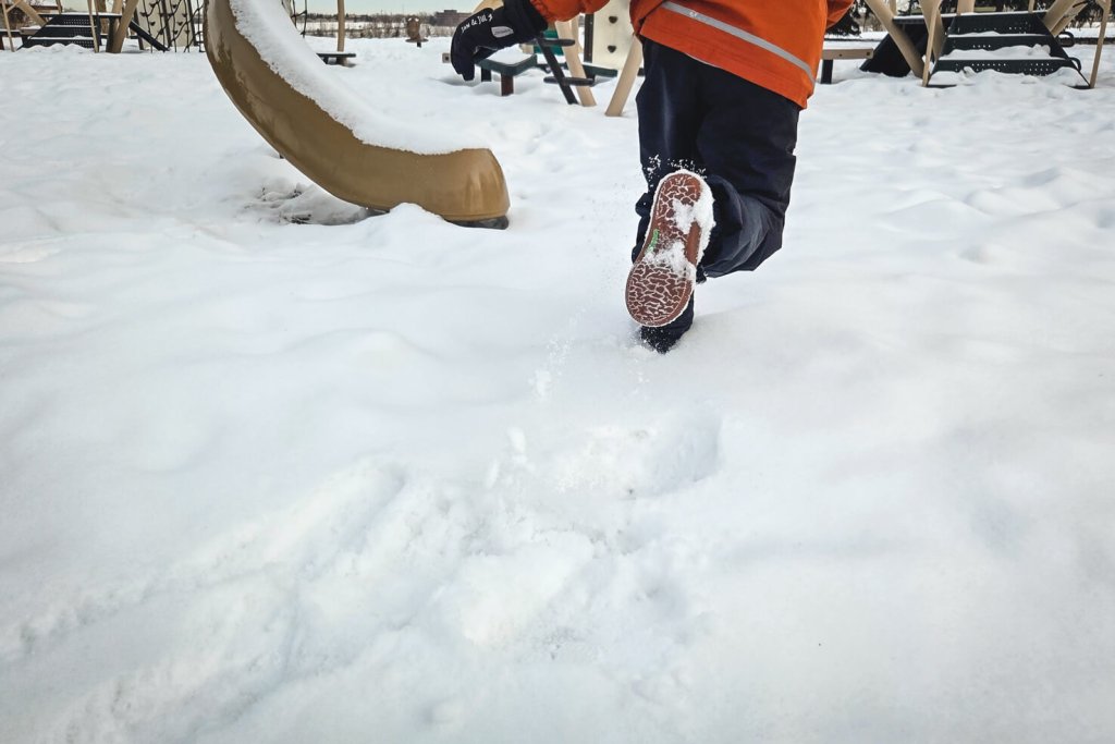 • Lightweight and flexible, so they’ll actually run, not stomp – this is a huge winter for a winter shoe and big advantage of barefoot shoes